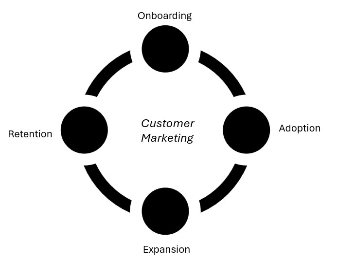 The majority of customer marketing programs typically prioritize activities aimed at engaging new prospects. These include creating customer case studies as middle of the funnel assets, inviting customers to speak at prospect webinars, getting customers to ‘market to’ prospects at local sports events, and customer appreciation dinners/loyalty programs to thank them for being good references. However, a robust customer marketing program should extend beyond targeting new prospects. It should also address the ‘post-sales’ customer lifecycle, where the revenue impact could be equally substantial or even greater.